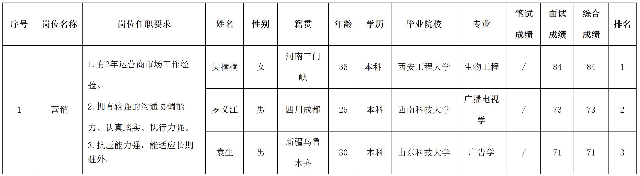根據四川長虹新網科技公司發布的招聘公告及招聘相關規定,經筆試、面試等程序,現將筆試(面試)成績予以公示。