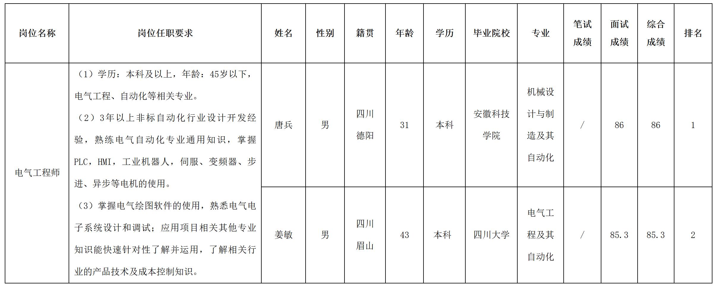 根據四川長虹智能制造技術有限公司發布的招聘公告及招聘相關規定,經面試等程序,現將面試成績予以公示。