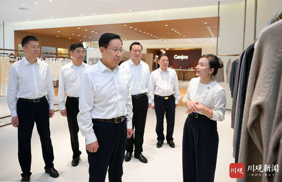 2025年8月14日,省委書記、省人大常委會主任王曉暉到廣安市前鋒區四川俊喬針織服裝公司調研,觀看產品展示,聽取公司生產經營、市場拓展等情況介紹。