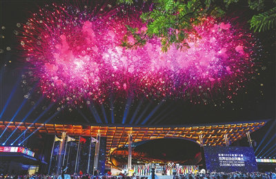 在溫暖清澈的童聲合唱《友誼地久天長》中,位于秦皇湖中央的世運會主火炬緩緩熄滅。文體表演舞動青春的活力,璀璨的焰火綻放夜空,將現場變成歡樂的海洋。人們心心相融,珍藏寶貴的成都記憶,訴說著不舍與祝福,期待著下一次的相聚。