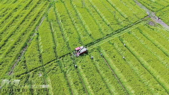 當前,梓潼4萬余畝水稻制種進入成熟季。在黎雅鎮蘭花村,聯合收割機在田間來回作業,一顆顆優質良種被裝入收割機中。 記者 劉曉東 攝