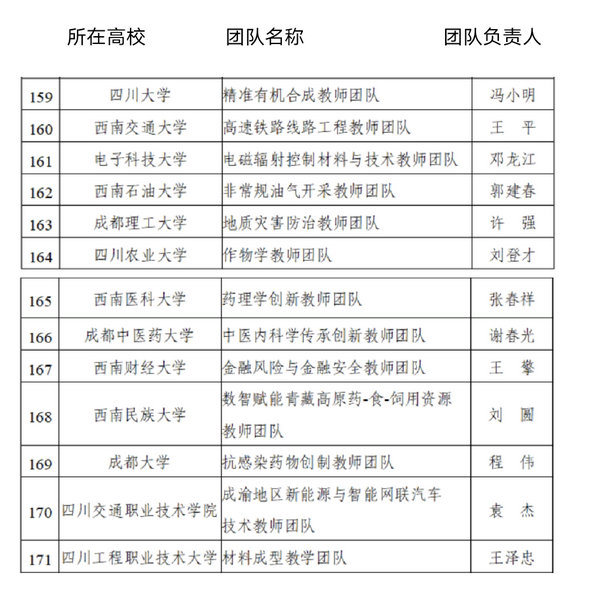 8月19日,教育部發布《關于第四批“全國高校黃大年式教師團隊”創建示范活動擬入圍名單的公示》,全國共有200個團隊入圍,其中,四川高校13個團隊上榜。