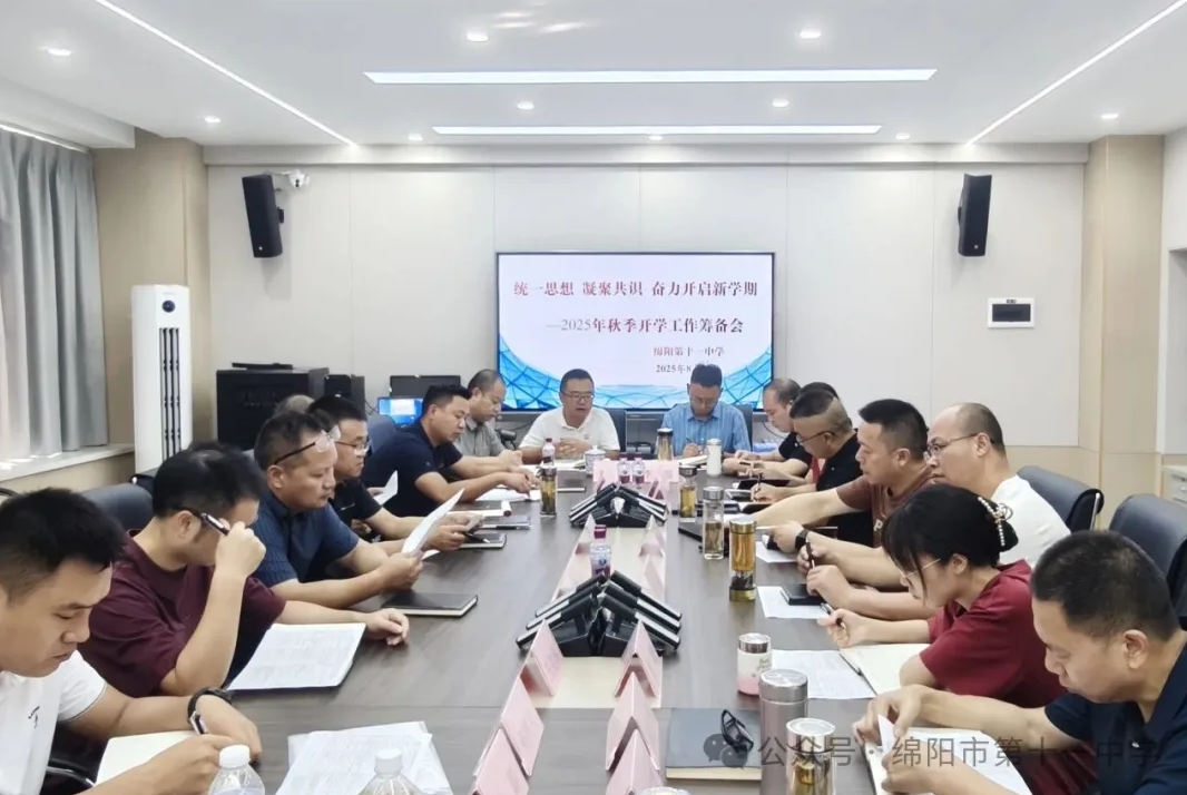 8月19—20日,綿陽市第十一中學召開了以“精心謀開局,聚力啟新程”為主題的2025年秋季學期開學籌備工作會議。南山中學黨委書記徐勇出席會議并講話,南山中學派駐十一中執行校長李強安排部署新學期工作,會議由黨支部書記鐘貞主持,全體行政干部參加會議。