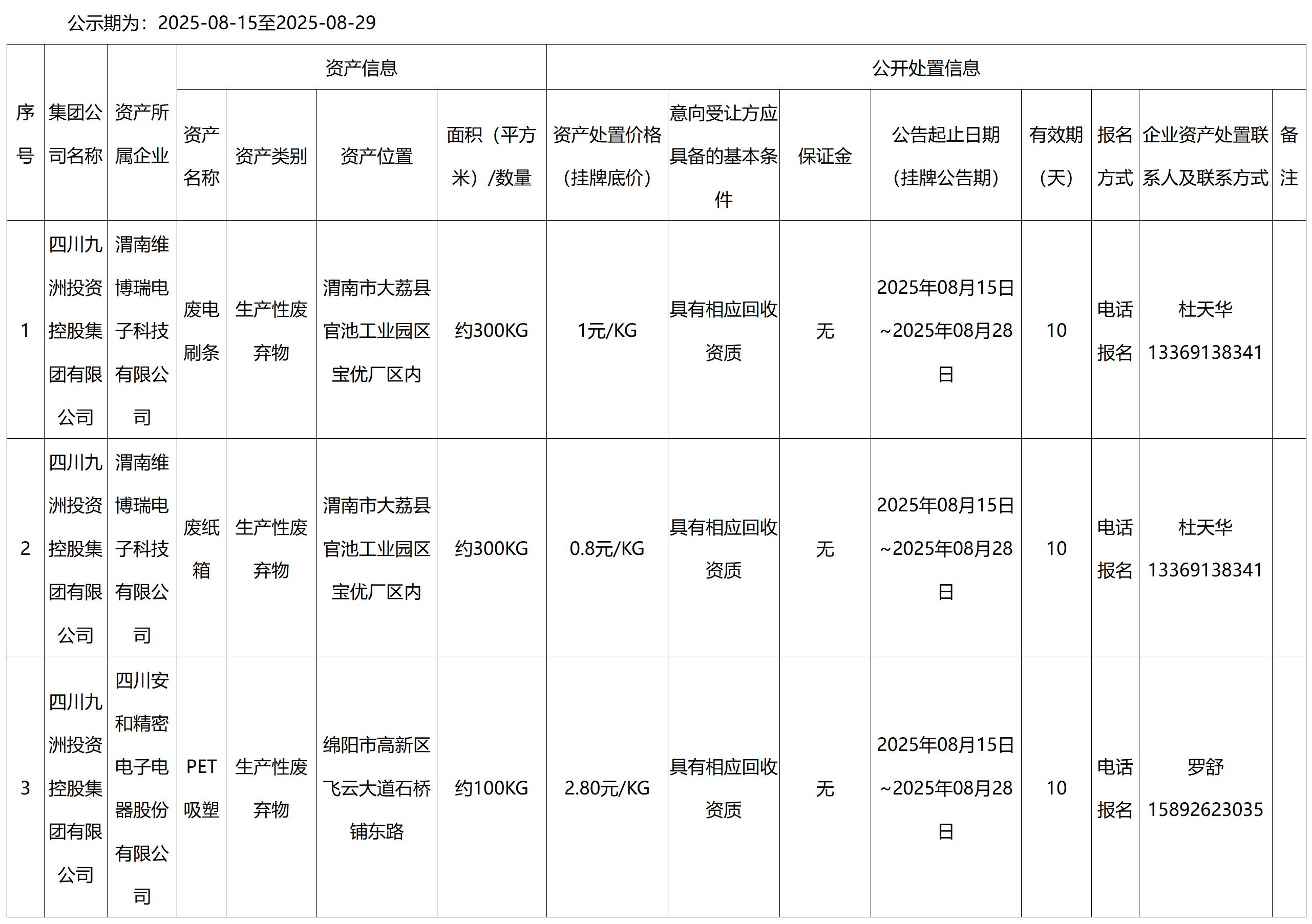 四川安和精密電子電器股份有限公司生產性廢棄物資產處置公告