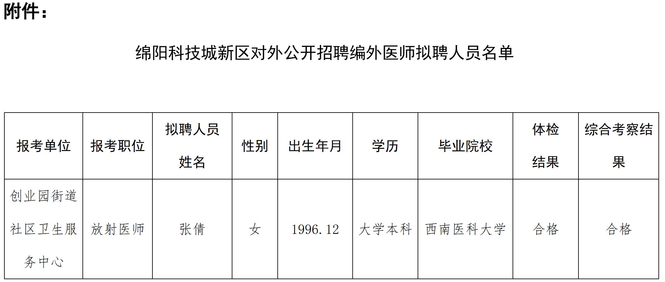 附件:綿陽(yáng)科技城新區(qū)對(duì)外公開(kāi)招聘編外醫(yī)師擬聘人員名單