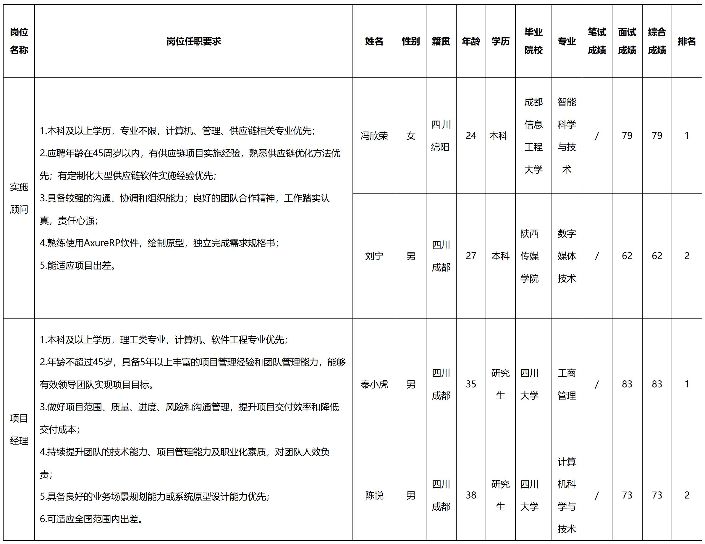 根據四川虹信軟件股份有限公司發布的招聘公告及招聘相關規定,經面試等程序,現將面試成績予以公示。