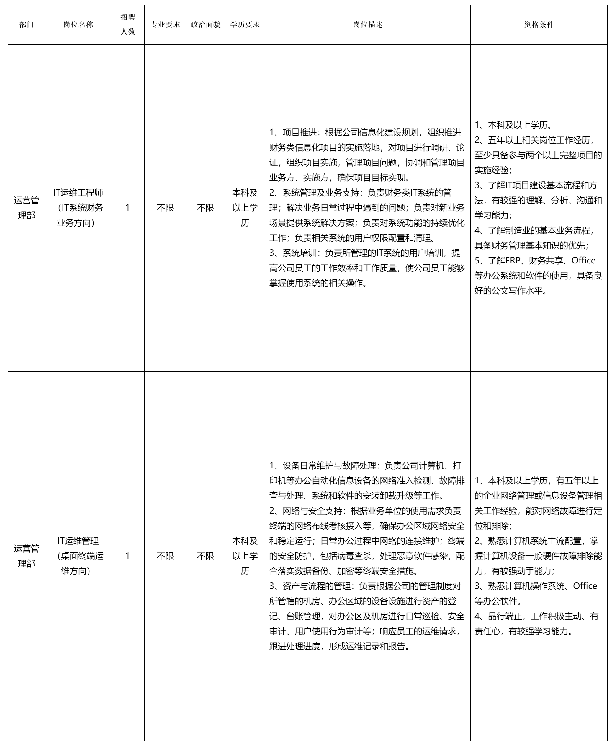 8月20日起招聘信息長期有效,以人員招聘到崗為止