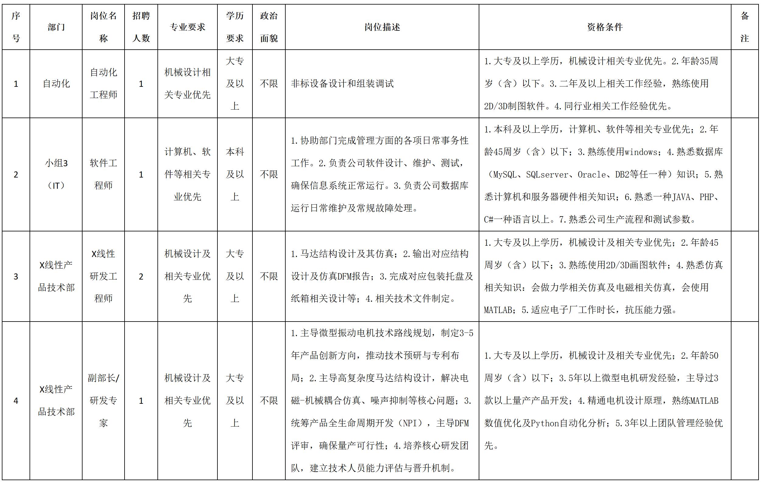 四川安和精密電子電器股份有限公司是綿陽市2012年重點(diǎn)招商引資企業(yè),公司位于中國科技城——綿陽出口加工區(qū)。公司專注于智能手機(jī)產(chǎn)業(yè)鏈,是國家標(biāo)準(zhǔn)《便攜式電子產(chǎn)品用振動(dòng)電機(jī)通用規(guī)范》主要起草單位,國家制造業(yè)單項(xiàng)冠軍培育企業(yè),國家高新技術(shù)企業(yè)。公司主導(dǎo)產(chǎn)品手機(jī)微型振動(dòng)馬達(dá),主要客戶有:華為、小米、OPPO、VIVO、聯(lián)想、索尼、偉創(chuàng)力、富士康等世界知名企業(yè),年產(chǎn)銷量行業(yè)領(lǐng)先。目前公司在職員工3000余人,管理團(tuán)隊(duì)中三分之二人員擁有大專及以上學(xué)歷,碩士5人,外籍專家3人。公司正在籌建移動(dòng)互聯(lián)產(chǎn)業(yè)園,以移動(dòng)互聯(lián)產(chǎn)業(yè)為方向,以智能手機(jī)產(chǎn)業(yè)鏈為核心,由元器件制造商向解決方案提供商轉(zhuǎn)變。公司的快速發(fā)展需要大量的人才,同時(shí)也為人才的快速提升提供了難得的發(fā)展機(jī)遇與上升空間。如果你有自信,有夢(mèng)想,歡迎加入我們,共同創(chuàng)造美好的明天!
