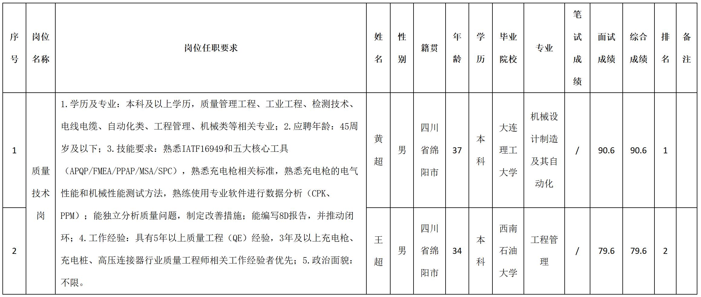 根據四川九洲線纜有限責任公司發布的招聘公告及招聘相關規定,經筆試、面試等程序,現將筆試(面試)成績予以公示。