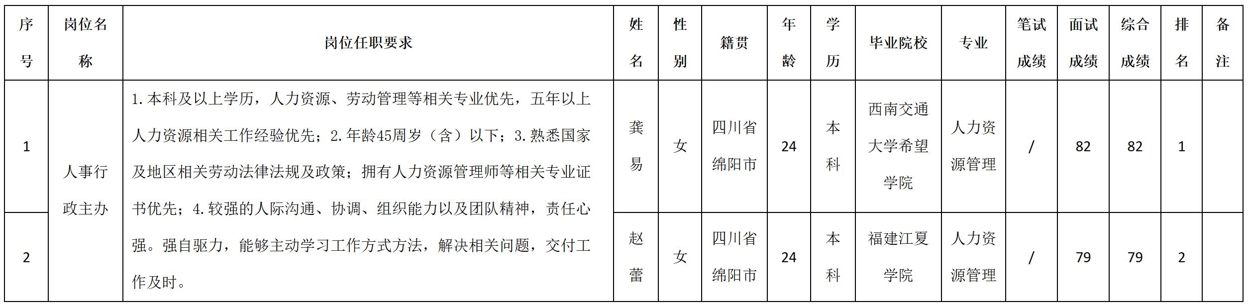 根據四川安和精密電子電器股份有限公司發布的招聘公告及招聘相關規定,經筆試、面試等程序,現將筆試(面試)成績予以公示。
