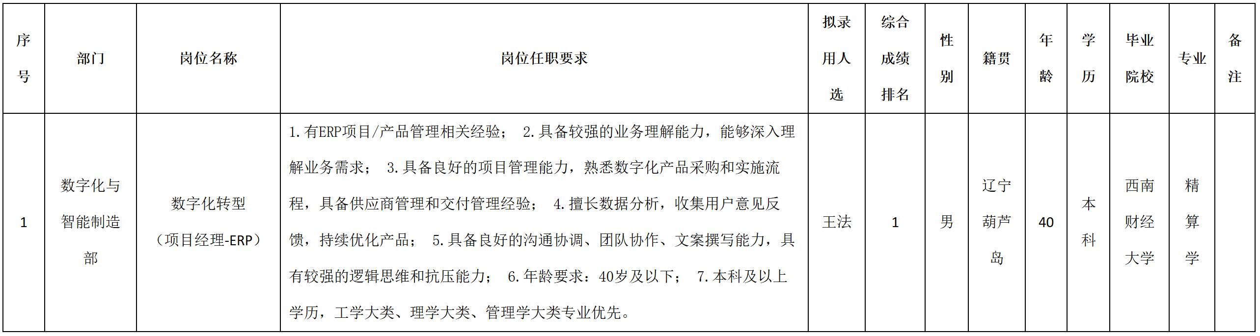 根據四川九洲投資控股集團有限公司發布的招聘公告及招聘相關規定,經筆試、面試、考察、體檢等程序,擬錄用王法同志到四川九洲投資控股集團有限公司工作,現予以公示,具體情況如下: