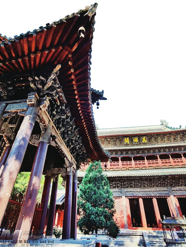 陽光明媚的日子里,古剎的碧色琉璃瓦在太陽照射下熠熠生輝;有風(fēng)拂來,懸掛于翹角飛檐下的風(fēng)鈴,依然能夠送出悅耳的鈴聲,讓人回味無窮。