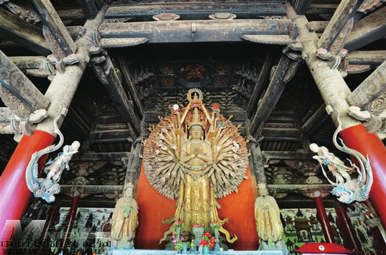 報(bào)恩寺有“六絕”:媲美北京法海寺的彩繪壁畫、全國唯一還能轉(zhuǎn)動的明代轉(zhuǎn)輪經(jīng)藏、整木木雕的千手觀音像、樣式繁多的斗拱、全寺近萬條龍、清一色的楠木建筑,它們共同匯成明代建筑之精美的真實(shí)寫照,報(bào)恩寺的“六絕”讓整個(gè)寺廟更具獨(dú)特價(jià)值。