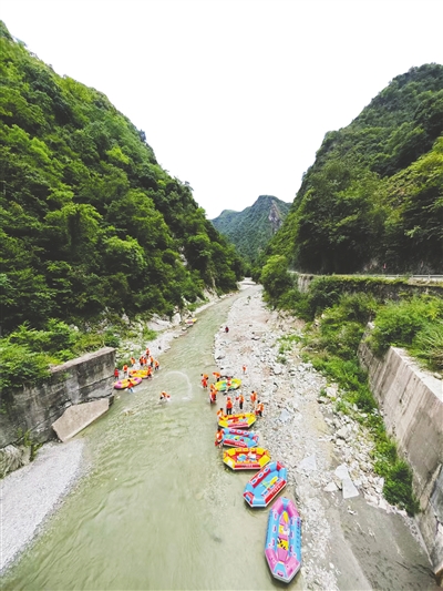 這個(gè)夏天,來這里體驗(yàn)峽谷漂流的游客猛增,清澈湍急的溪流中,五彩的漂流艇首尾相接,在青山峽谷間劃出一道道充滿活力的弧線。