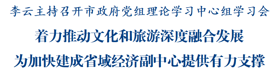 綿陽新聞網訊 8月26日,市政府黨組召開理論學習中心組學習會,集中學習習近平總書記關于文化和旅游工作的重要論述,學習省委十二屆七次全會和市委八屆十次全會精神。市委副書記、市政府黨組書記、市長李云主持會議并講話,強調要深入學習貫徹習近平總書記對四川工作系列重要指示精神,認真落實省委、市委全會各項部署要求,著力推動文化和旅游深度融合發展,不斷提升綿陽文化影響力、旅游吸引力、產業競爭力,為加快建成省域經濟副中心提供有力支撐。