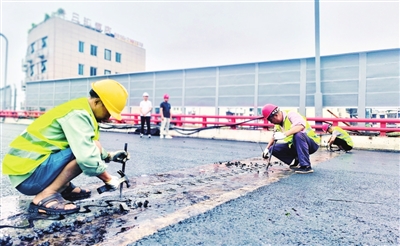 記者在現(xiàn)場看到,新三匯橋主體結(jié)構(gòu)巍然屹立,橋面寬敞平整,部分新的道路指示牌已清晰可見,交通標(biāo)線也在緊張施劃中。