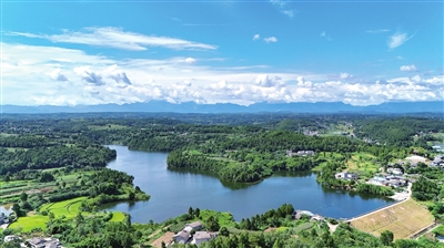 處暑過后,暑氣漸消,秋意悄然暈染開來。8月23日,綿陽游仙區街子、云鳳等地的鄉村田園間,一派絢麗多彩的景致如詩如畫。黃綠交織的田野上,農房錯落有致,道路如玉帶般蜿蜒其間,水庫似碧玉鑲嵌大地,處處透著寧靜祥和。抬頭望去,流云在湛藍的天空中如輕紗漫舞,云卷云舒間盡顯浪漫,引人沉醉。極目遠眺,逶迤起伏的龍門山脈宛如巨龍騰躍,仿佛直抵天際;山巔云層奔涌,氣勢磅礴,與蒼穹共同勾勒出一幅雄渾壯闊的天地畫卷。
