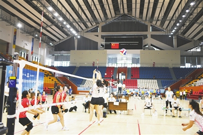 本報訊 8月26日,綿陽市第八屆運動會成年組氣排球比賽在梓潼縣全民公共運動中心火熱進行。
