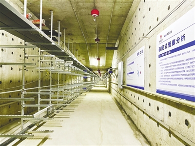 在絳熙中街,寬度達到三米的地下管廊仿佛一個偌大的集裝箱。管廊主要分為兩個部分,右側主要用于架設電力和通信管線,左側鋪設供水管和污水管道,最大程度上保證了各類管線的有序排列。