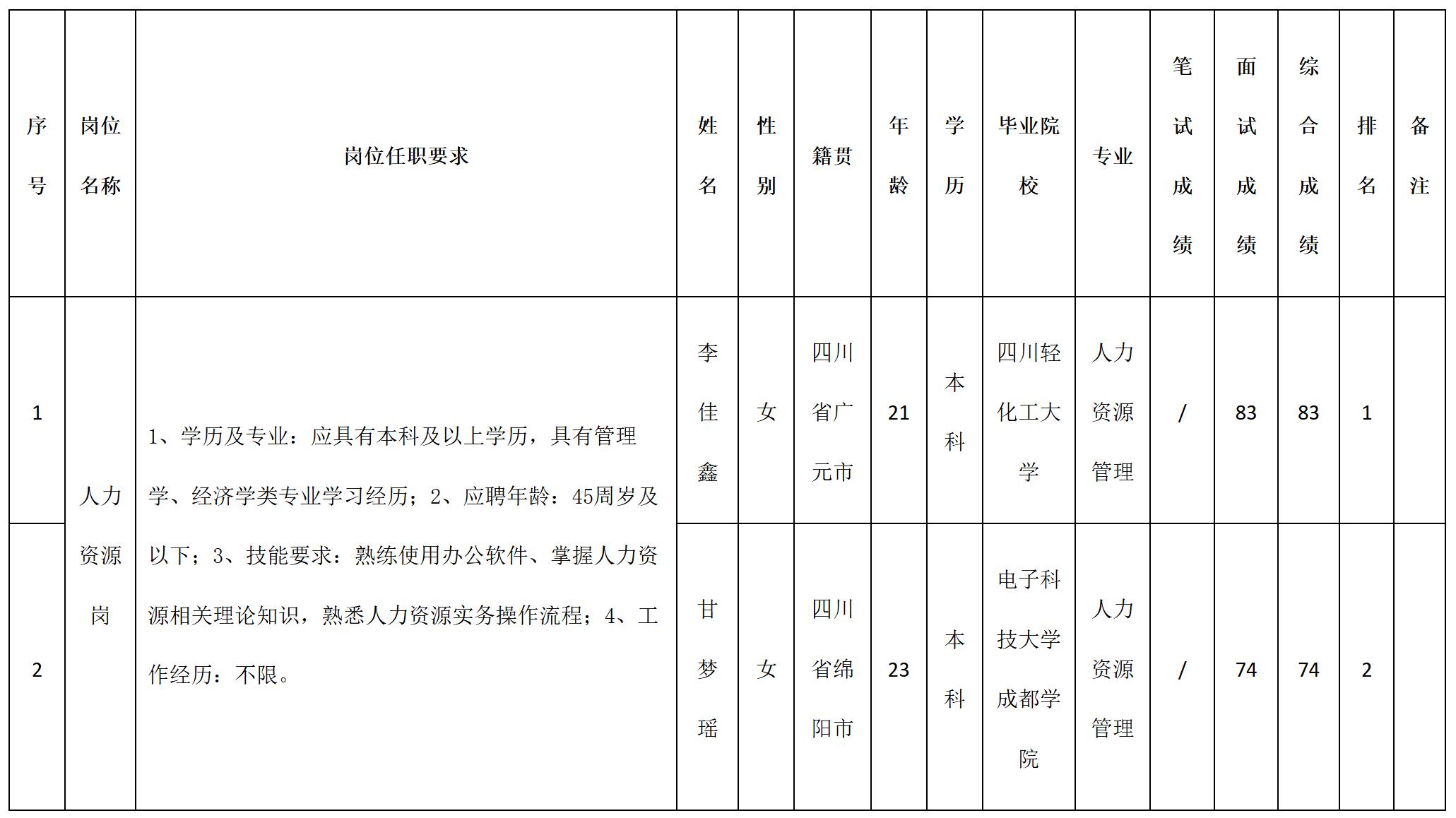 根據四川九華光子通信技術有限公司發布的招聘公告及招聘相關規定,經筆試、面試等程序,現將筆試(面試)成績予以公示。