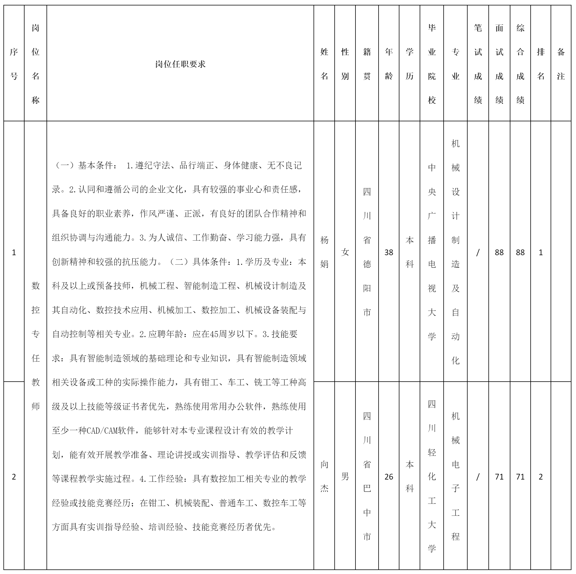 根據四川九洲教育投資管理有限公司發布的招聘公告及招聘相關規定,經筆試、面試等程序,現將筆試(面試)成績予以公示。