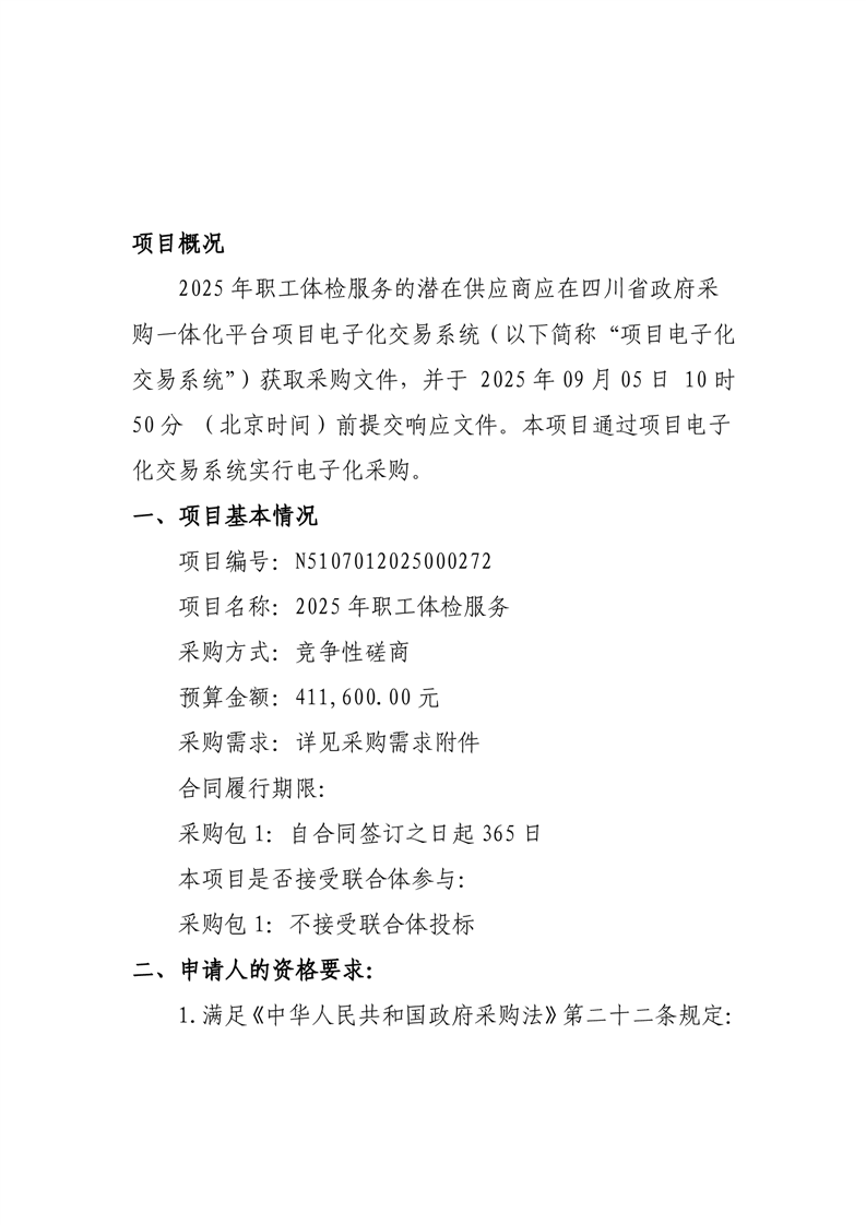 綿陽市發展和改革委員會2025年職工體檢服務競爭性磋商公告