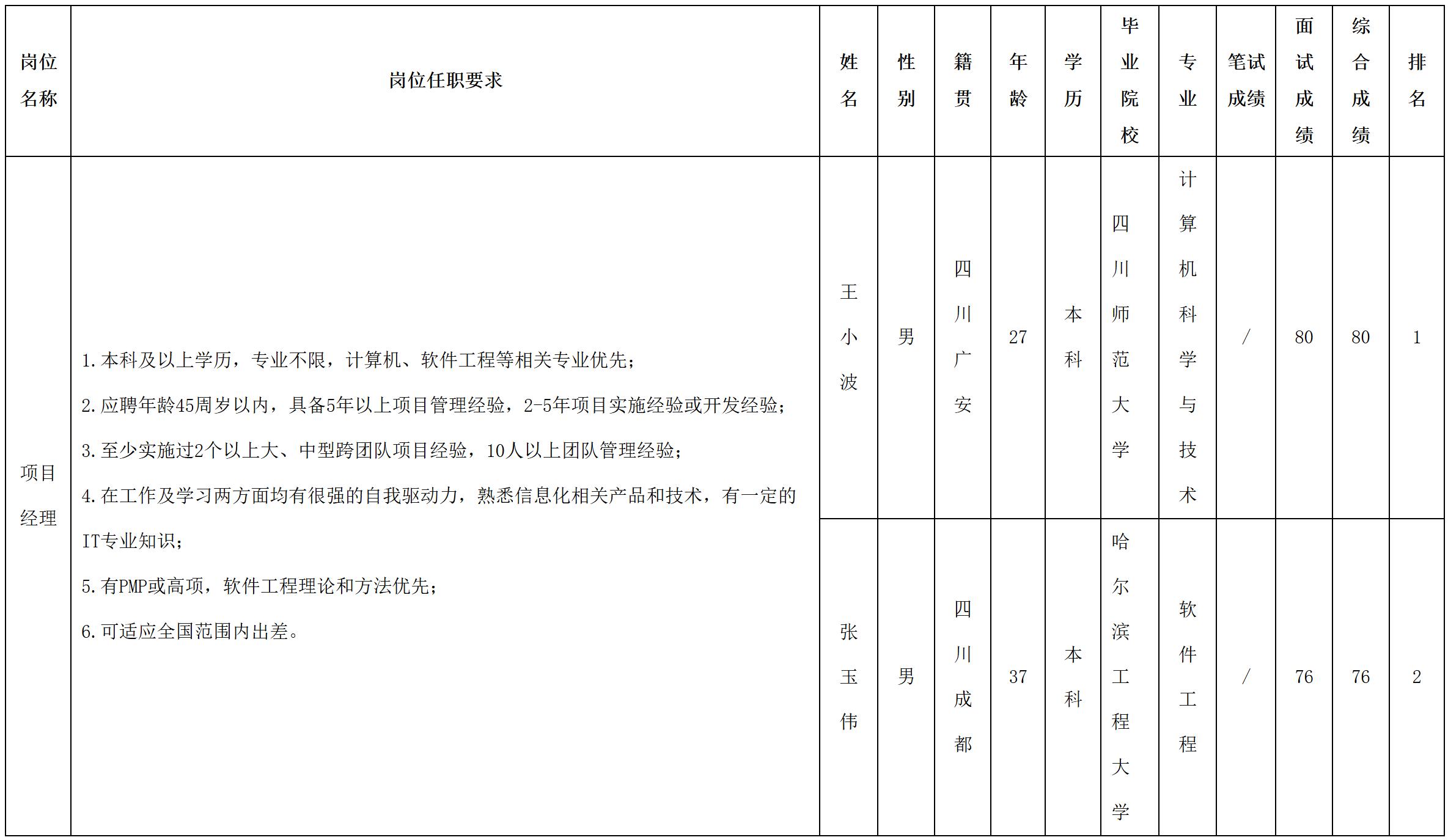根據四川虹信軟件股份有限公司發布的招聘公告及招聘相關規定,經面試等程序,現將面試成績予以公示。