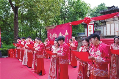 “與愛人相戀5年,能在子云亭下感受傳統婚俗魅力,這個集體婚禮,讓人終生難忘!”新人王先生夫婦感嘆。