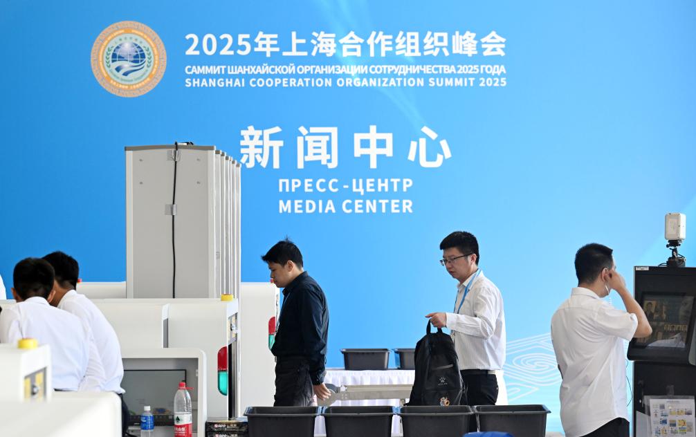 8月28日拍攝的2025年上海合作組織峰會新聞中心。新華社記者 趙子碩 攝