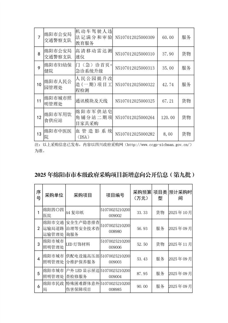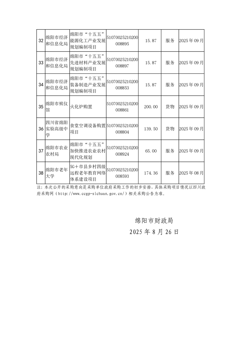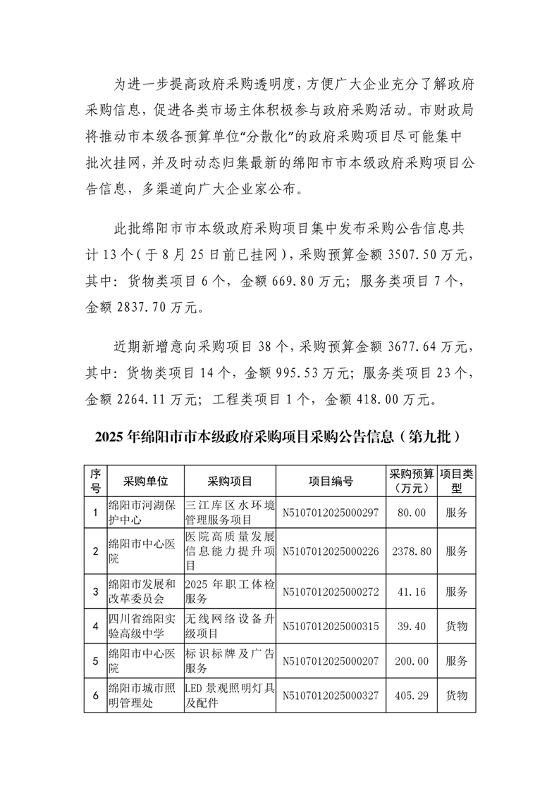 51個政府采購項目的“機會清單”出爐!(2025年第九批)綿陽市市本級政府采購項目信息動態(2025年第九波)