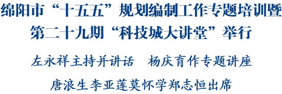 綿陽新聞網(wǎng)訊 為深入學習貫徹習近平總書記關于“十五五”規(guī)劃編制工作的重要指示精神,準確把握“十五五”時期的階段性要求,扎實做好“十五五”規(guī)劃編制工作,8月29日,綿陽市舉行“十五五”規(guī)劃編制工作專題培訓暨第二十九期“科技城大講堂”。省委常委、市委書記左永祥主持并講話,清華大學中國發(fā)展規(guī)劃研究院高級研究員、中國經(jīng)濟體制改革研究會高級資深專家楊慶育應邀作專題講座。