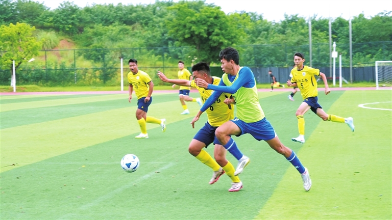 “快跟上!搶斷,傳球,射門……”教學比賽中,雙方球員如離弦之箭般沖鋒陷陣。攻防節奏快速轉換,精彩場面層出不窮,隊員們憑借扎實的技戰功底和默契的團隊協作,在綠茵場上盡情馳騁。他們積極奔跑、果斷拼搶,傳球精準、接球沉穩、射門勁準,一系列動作行云流水。精妙的配合將現場氛圍推向高潮。