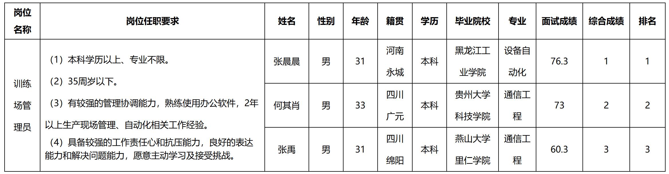 根據四川長虹虹微科技有限公司發布的招聘公告及招聘相關規定,經面試等程序,現將成績予以公示。