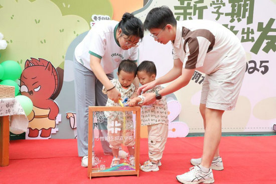 “浪浪山”外有藍天,而勇氣,是孩子手中的第一把鑰匙。紅毯鋪路,氣球為門,幼兒園以充滿童趣和儀式感的環(huán)境,溫柔地接納每一個略顯忐忑卻又滿懷好奇的小小人兒。他們牽著爸爸媽媽的手,一步一步,走進班級,認識自己的小床、水杯,完成與“新家”的第一次接觸——這看似簡單的每一步,都是翻越“浪浪山”的扎實腳印。