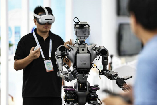 觀眾在2025全球工業互聯網大會現場與機器人互動。新華社記者 周華 攝