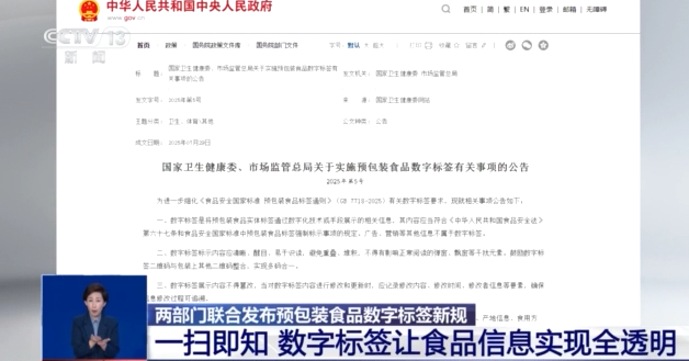 今后,這種情況要改變了,針對實體標簽版面有限的痛點,國家衛生健康委、國家市場監督管理總局,8日聯合發布《關于實施預包裝食品數字標簽有關事項的公告》,預包裝食品,就是指預先包裝或者制作在包裝材料和容器中的食品,我們日常購買的除了生鮮等,絕大部分食品都是預包裝食品。《公告》明確了預包裝食品數字標簽范圍、使用和修改等應用要求,這標志著我國食品標簽管理正式邁入數字化新階段。