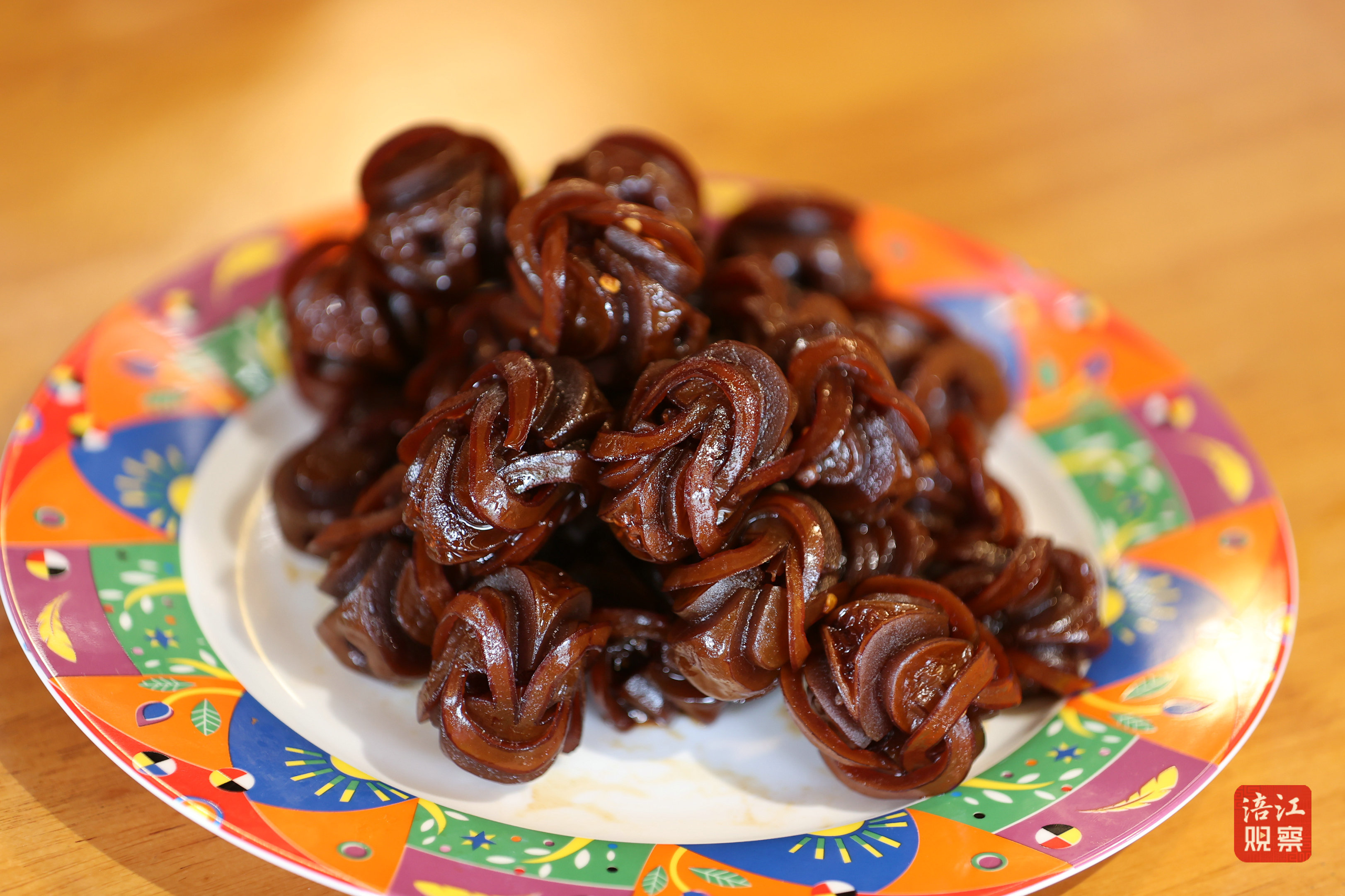 完成雕刻的套棗還需用草木灰水浸泡一夜,去澀增硬,再用開水煮制。最后用平武深山的野生蜂蜜蜜制8-12小時。“野生蜜的黏稠度能完美定型,賦予琥珀色澤。”陳力菊強調。成品套棗玲瓏剔透,入口甜而不膩,棗香與蜜香交融,真正做到了“色香味形”四絕。