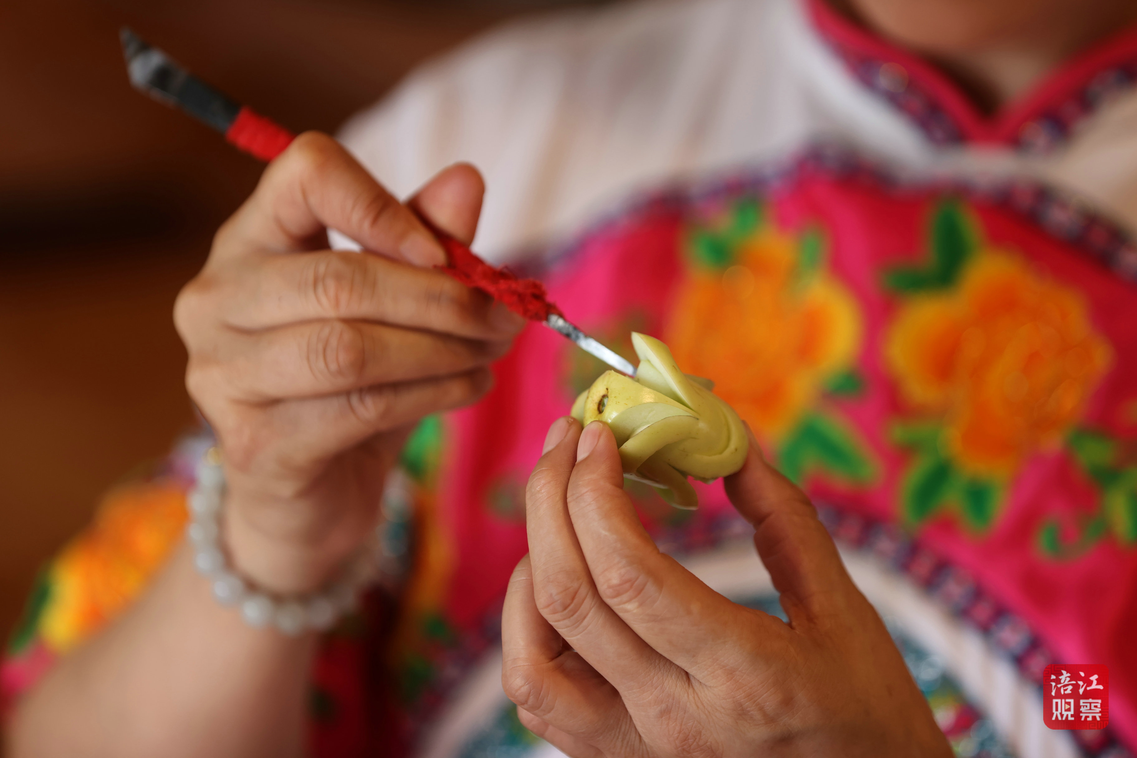 陳力菊還為套棗注入了新時代精神內核:六片花瓣環環相扣守護棗核,象征“56個民族永結同心”——傳統技藝被賦予民族團結的深刻寓意。