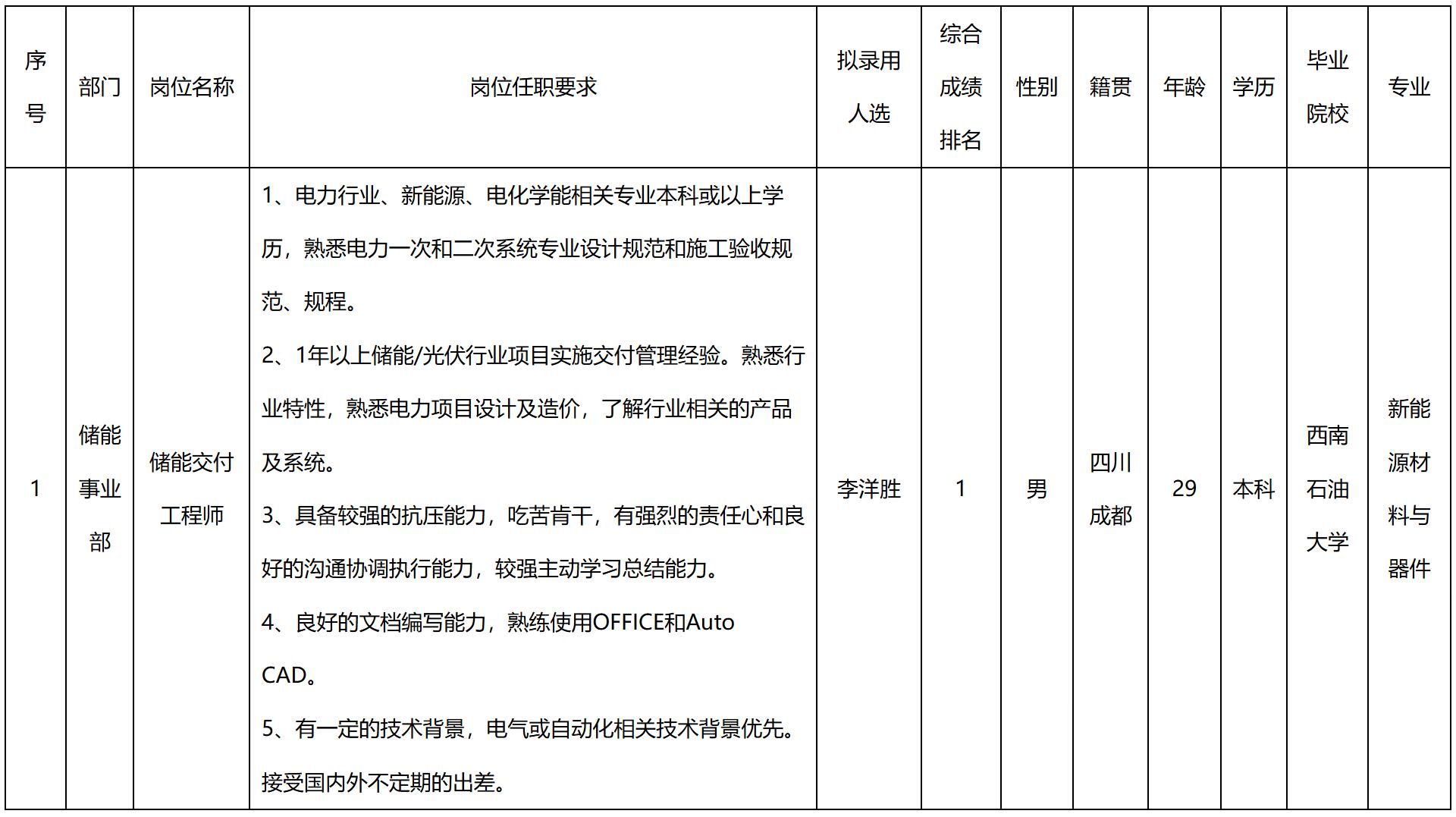 根據四川長虹電源股份有限公司發布的招聘公告及招聘相關規定,經面試、考察、體檢等程序,擬錄用李洋勝同志到我司工作,現予以公示,具體情況如下: