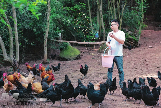 “咕咕咕……”近日,游仙區仙鶴鎮洛水村穎菲農場里,梁城的呼喚聲剛響起,滿山的麻羽雞、五黑雞便撲棱著翅膀向他飛奔而來。這位自嘲是“山大王”的“新農人”,始于對鄉親們的心疼。
