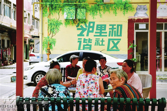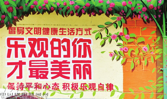 年輕志愿者關(guān)愛老人、大熊貓騎上紅色鯉魚……這些生動(dòng)有趣的畫面不僅營(yíng)造出溫馨和諧、活潑生動(dòng)的社區(qū)氛圍,更在潛移默化中引導(dǎo)居民展現(xiàn)動(dòng)人的風(fēng)采——“樂觀的你才最美麗”。