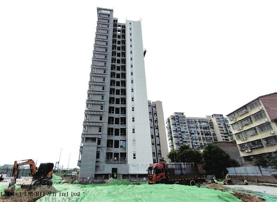 近日,記者在現場看到,施工現場一派繁忙,叮當的敲擊聲與機器的轟鳴交織。工人們在高空吊籃上專注地粘貼外墻磚石,下方人員有序傳遞物料。室外,鋪路工人們操作機械鋪設地磚,綠化人員緊隨其后栽種苗木。建設單位項目經理王濤穿梭于樓棟和小區出入口之間協調調度,他告訴記者,項目建設中克服了施工場地狹小等困難,全速推進工程進度,計劃本月底基本完工。