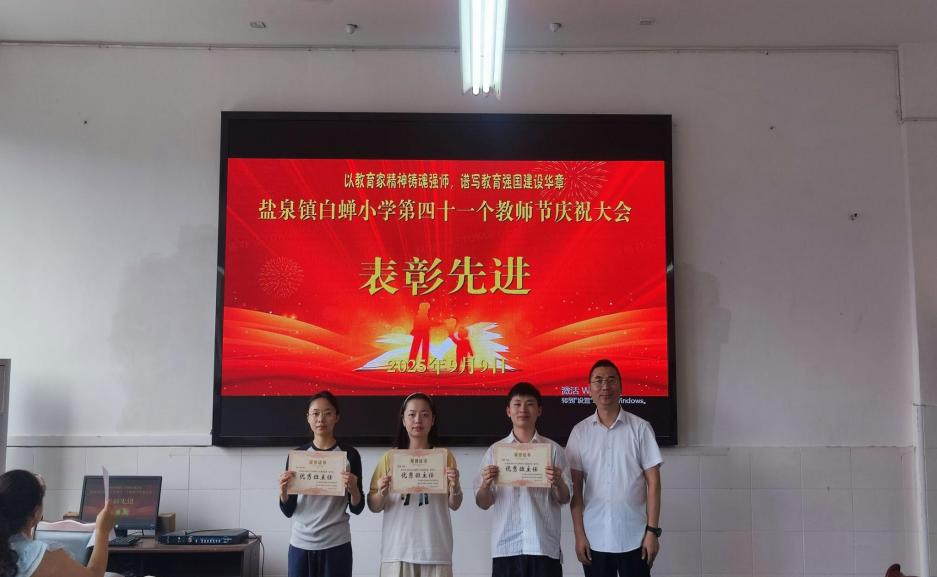 為了弘揚尊師重教社會風尚,全面提升教育質量,努力辦好人民滿意的教育,9月9日上午,鹽泉鎮(zhèn)白蟬小學舉行了以“以教育家精神鑄魂強師,譜寫教育強國建設華章”為主題的第41個教師節(jié)慶祝表彰活動。該校全體教職員工齊聚一堂,共同度過了一個簡潔而熱烈的節(jié)日。