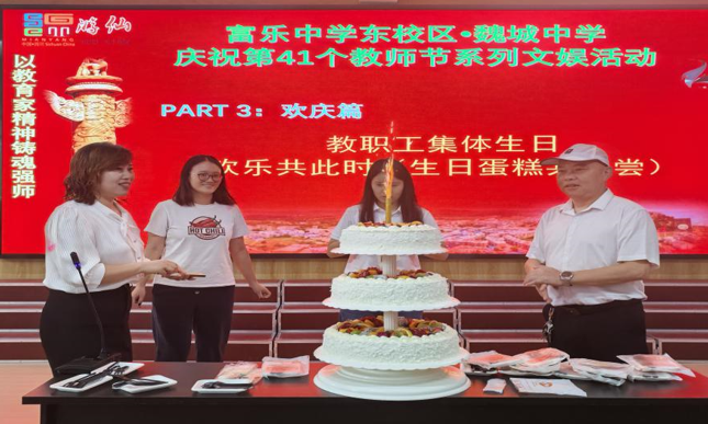 在教職工集體生日環節,該校工會為大家準備了鮮花和精美禮物,老師們齊唱生日歌,共享生日蛋糕,將慶祝活動推向了高潮。