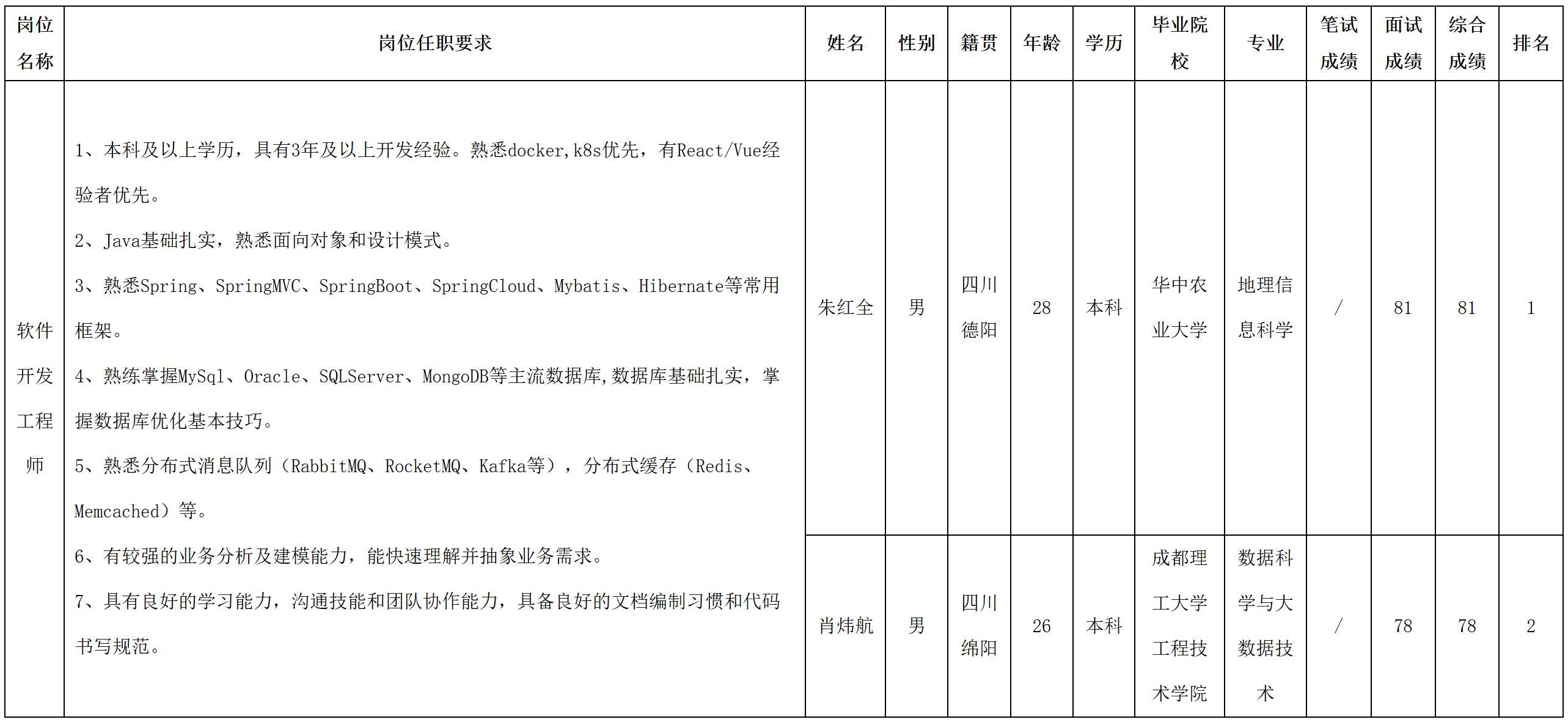 根據四川華豐科技股份有限公司發布的招聘公告及招聘相關規定,經筆試、面試等程序,現將筆試(面試)成績予以公示。