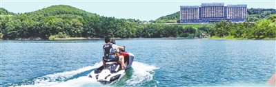 “抓緊了!要加速啦!”伴隨著教練的呼喊聲,皮卡丘造型的水上坐騎在小艇牽引下,在7平方公里的仙海湖面飛馳,浪花卷起拍在身上,引得游客陣陣歡呼。這里不僅是孩子們的童話樂園,更是成年人釋放壓力的激情賽場。香蕉船、小黃鴨等萌趣水上設備,巧妙融合了趣味性與刺激性;尾波沖浪、摩托艇、水上槳板等項目的引入,進一步豐富了水上運動的多樣性。