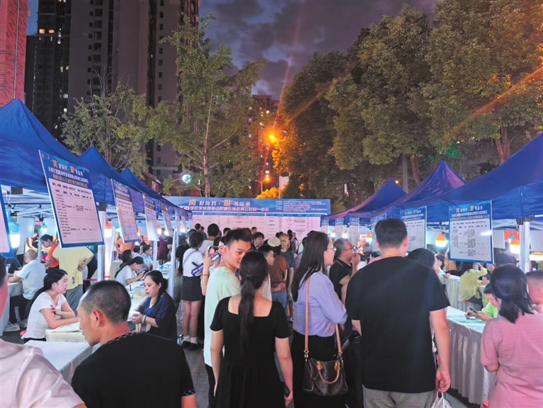活動現場,政策咨詢區、企業展位前熙熙攘攘,求職者手執簡歷、細詢崗位,企業招聘人員耐心解答、廣納良才,政策的暖流、就業的希望,在夜色中交織涌動。