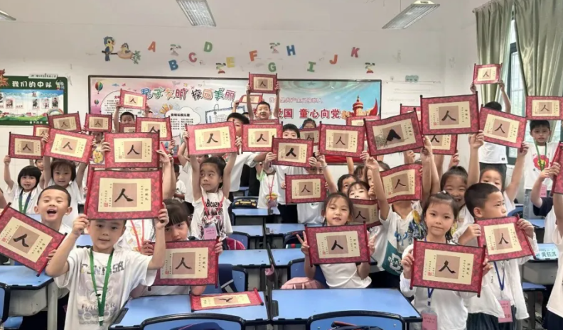 書寫人字,一撇一捺立乾坤。人字兩筆寫春秋,一生一世立本真。該校黨委書記賈昆揮毫潑墨,以“人”字為范,一筆一劃詳解“頂天立地”的做人真諦。家長執子之手,言傳身教間,傳遞“堂堂正正”的處世準則;小君子們握筆摹寫,簽名按印,展示“人”字,合影為念。人字雖簡,簡單的一撇一捺,卻是漢字的啟蒙,更是人生的第一課——教他們于天地間挺身為“人”,于歲月中守正為“君”。