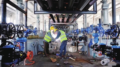 迪澳藥業(yè)工人正在查看設備運轉情況