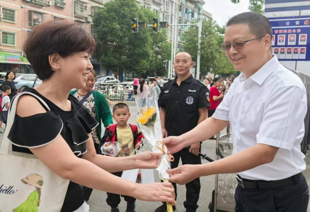 上午7時30分,該校全體行政干部準時在校門口迎接老師們的到來,并向每位教師送上了鮮花和節日的祝福。
